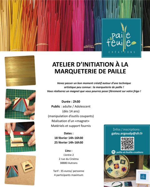 Venez passer un bon moment créatif autour d’une technique artistique peu connue : la marqueterie de paille !